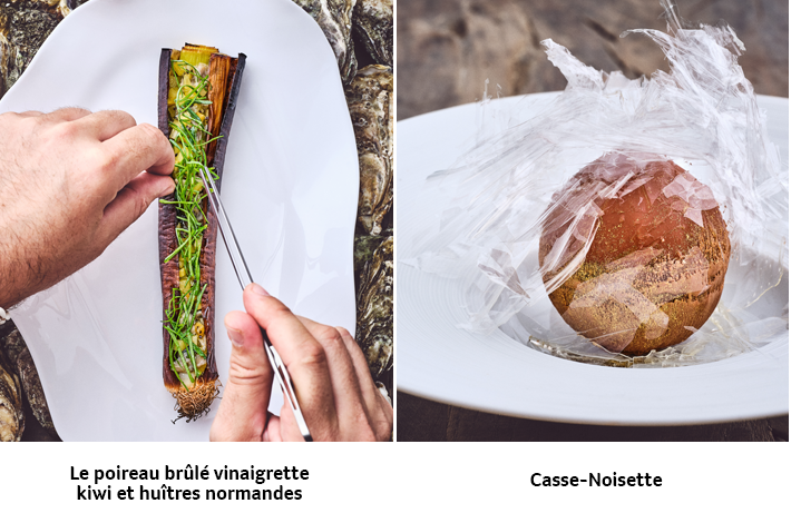 - Le poireau brûlé vinaigrette kiwi et huîtres normandes