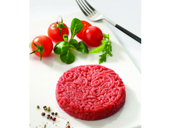 Préparation surgelée à 80 % de viande de bœuf hachée avec des protéines végétales de soja.