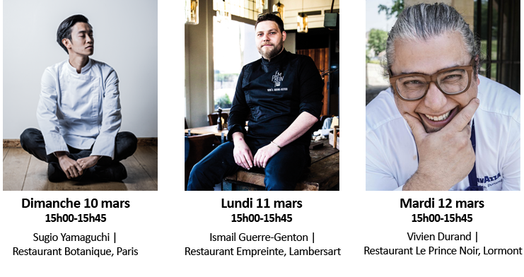 Nouveauté pour cette édition, chaque après-midi de 15h00 à 15h45, 3 chefs d’exception, qui auront signé et réalisé les déjeuners privés pour la Table d’Hôtes Transgourmet, proposeront en duo avec un producteur un atelier pédagogique autour d’une sélection de produits. Un tasting où les produits seront présentés, testés et cuisinés par le chef sous formes de petites bouchées pour être dégustés.