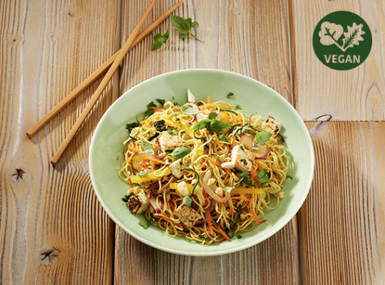 Dans un wok bien chaud avec l’huile de sésame, faire revenir les légumes 4 minutes (ils doivent rester légèrement croquants).