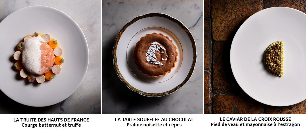 Chaque étape du repas est couverte : de l’entrée aux desserts gourmands, en passant par une sélection de fromages affinés par Marie Quatrehomme, Meilleur Ouvrier de France, et une gamme de vins et champagnes soigneusement choisis.