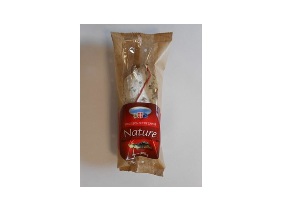 Viande de porc*, sel, lactose, dextrose, ail, poivre, muscade, conservateur : E252 ; ferments. Boyau naturel de porc.