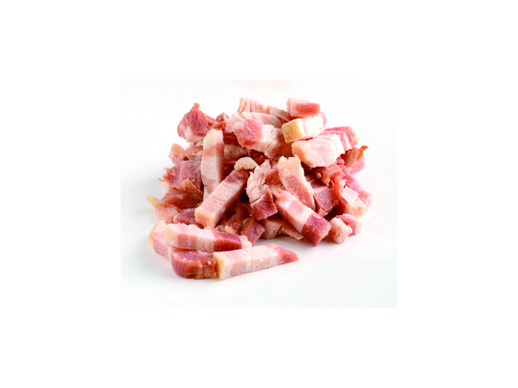 Le produit est préparé à partir de morceaux de poitrine de porc. Le produit subit un saumurage par malaxage. Le produit est ensuite égoutté, étuvé/fumé/cuit, refroidi puis tranché en lardons et conditionnés.