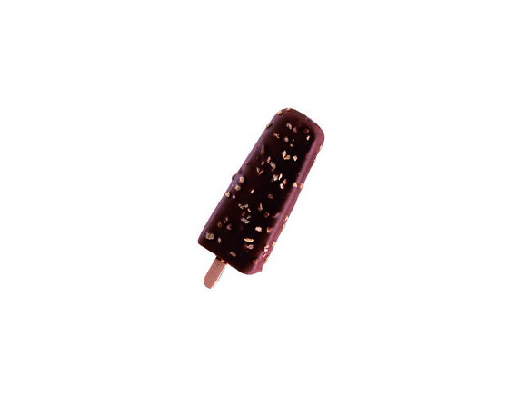 Bâtonnets de glace à la vanille 70,7% avec enrobage au cacao maigre 26,7% et grains soufflés au riz 2,6%