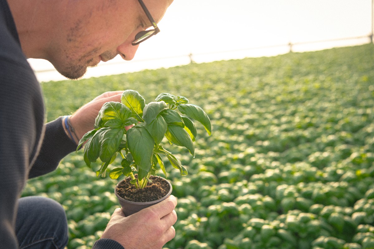 L’exigence de Julien est la même pour la menthe verte, le romarin officinal et le thym. Il choisit des variétés qui ramifient au lieu de monter, et plante 3 boutures par pot afin d’obtenir une plante de beau port et de gros volume. Au bout de 8 à 12 semaines, elles atteignent enfin la qualité attendue. Les ramasseurs, dont l’effectif triple en été, viennent d'Équateur, d'Espagne, de Colombie. Les femmes sont très méticuleuses, qualité indispensable tant ces plantes sont sensibles ! Au fil des ans, des couples se sont formés. « Des petits “basilic” sont nés de leur union. » s’amuse le maraîcher.
