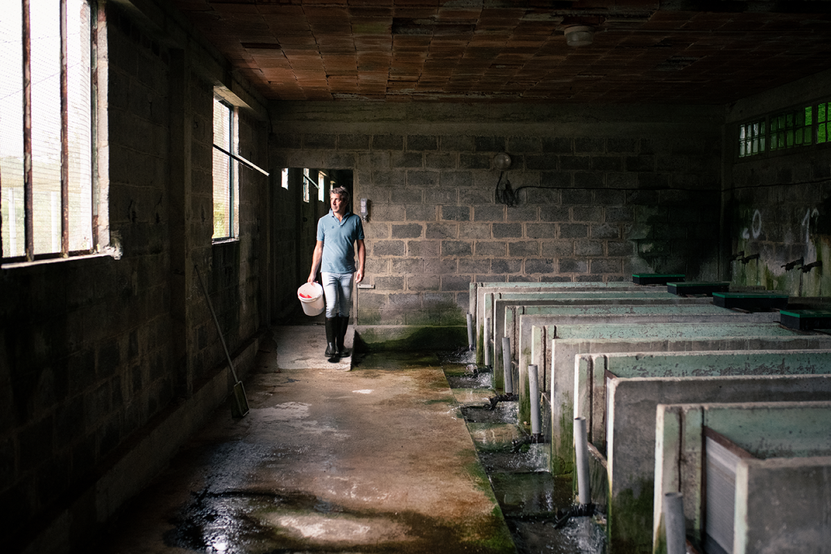 Une petite rivière longe les bassins, bordée de saules pleureurs et de cresson sauvage. Dans certains s’agitent des milliers de truitelles, tapis sombre et mouvant, dense sous l’eau limpide. Ration leur est donnée tous les matins, semée à la main, comme le grain. Le geste du semeur que Louis est par ailleurs. « Moi je bouche les trous, ici ! » s’amuse-t-il. La « nurserie des poissons » déménagera bientôt pour un bâtiment moderne et couvert, dont les auges hautes rendront le travail plus aisé.