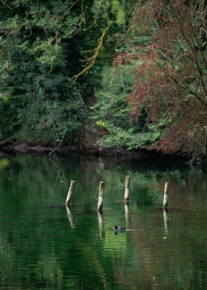 Dans les bassins, le spectacle est fascinant. Elles auraient pu inspirer à Saint-Exupéry sa fameuse phrase : « S’aimer, c’est regarder ensemble dans la même direction. » Un torrent argenté de truites irisées s’acharne à remonter le courant, animé par un instinct immuable, unité de milliers de corps et d’yeux luttant contre un courant contraire, éternellement désireux de rejoindre la source. Tout à coup, une étoile filante ! Une truite fonce en avant, fendant les eaux : une éclaboussure, un zigzag scintillant, une trace blanche… La Formule 1 des truites arc-en-ciel émerge un quart de seconde puis se glisse à nouveau dans le rang.