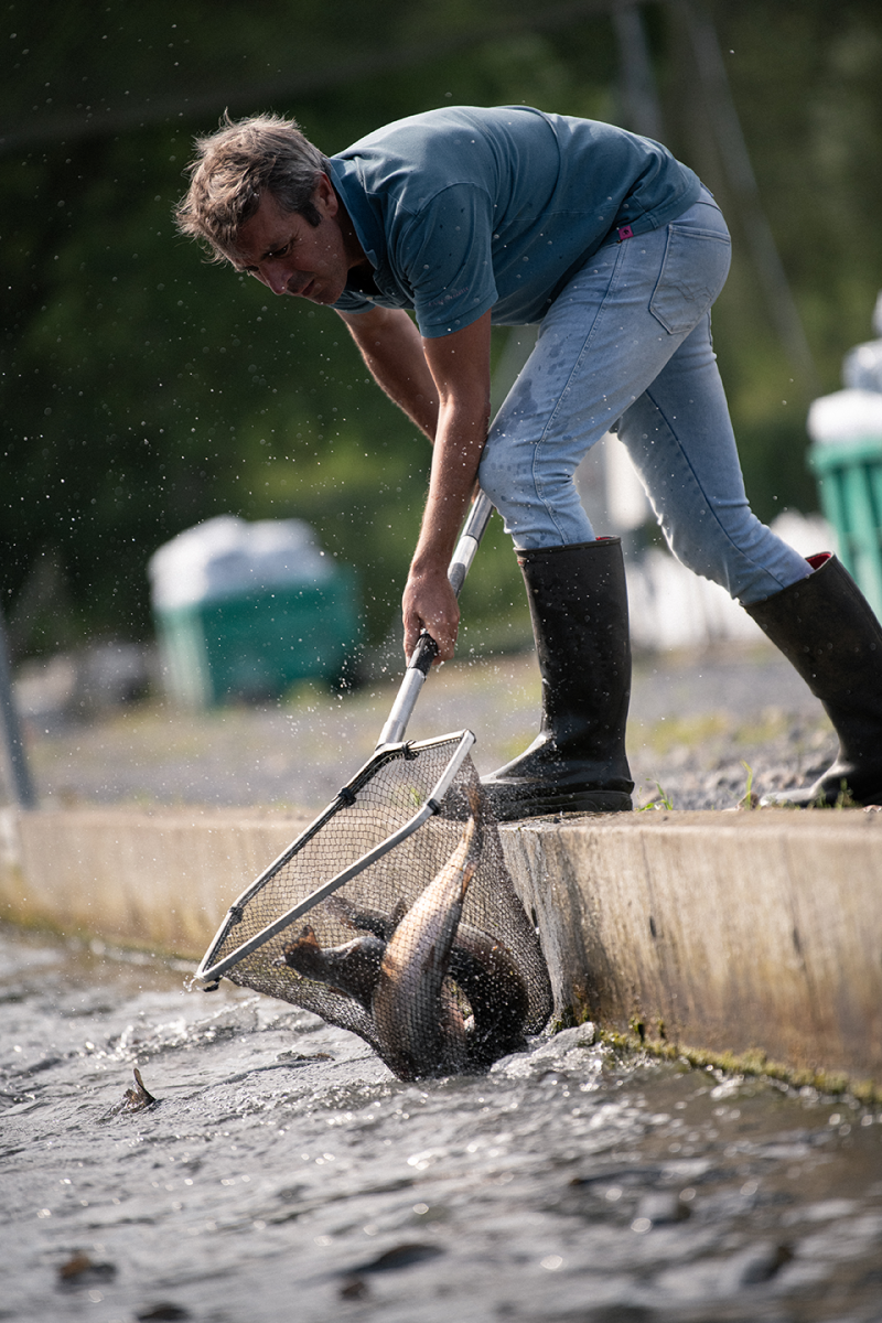 Louis est amoureux des Hauts-de-France dans lesquels ses racines sont si profondes. Ils s’avèrent en outre le lieu idéal pour élever des truites. « Nous avons la chance d’avoir de l’eau en quantité qui ne monte pas à plus de 15 degrés même au plus fort de l’été, et de nombreuses sources. » Ce qui le passionne dans ce métier ? La vie en plein air, un travail très varié au contact de l’eau, des truites, et du consommateur, grâce à son atelier de transformation et à la boutique attenante. Et puis il aime l’organisation de ce transport si particulier aux poissons, qui doivent être livrés vivants. « Nous faisons un produit de proximité : c’est le seul poisson que l’on peut trouver à 50 km de chez soi, où que l’on habite en France. Je le pêche le jour, les gens le mangent le soir ! »
