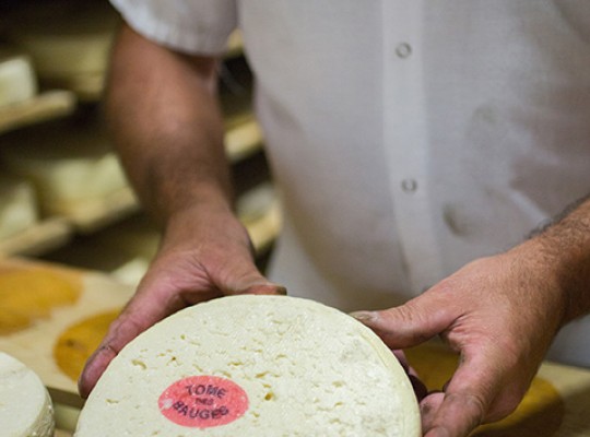 La Tome des Bauges nécessite beaucoup de travail, car toute la partie affinage est manuelle et ce sont des retournements et des frottages fromage par fromage. De 2 à 3 fois par semaine, des soins quasi quotidiens. Et ce pendant les 6 semaines que durent l'affinage de notre Tome des Bauges. »